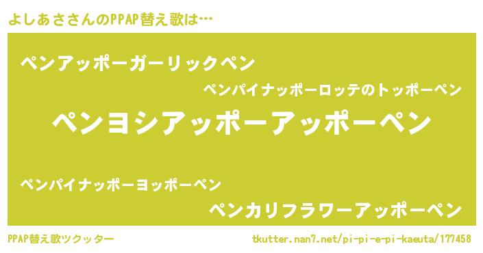 | ピコ太郎風あだ名 | 『ヨシ四郎』『ピヨ十郎』『ヨコ三郎』 |
