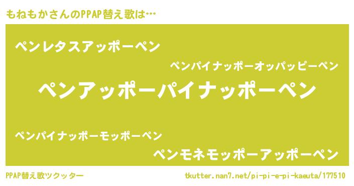 | ピコ太郎風あだ名 | 『ピモ太郎』『モコ史郎』『モネ太郎』 |