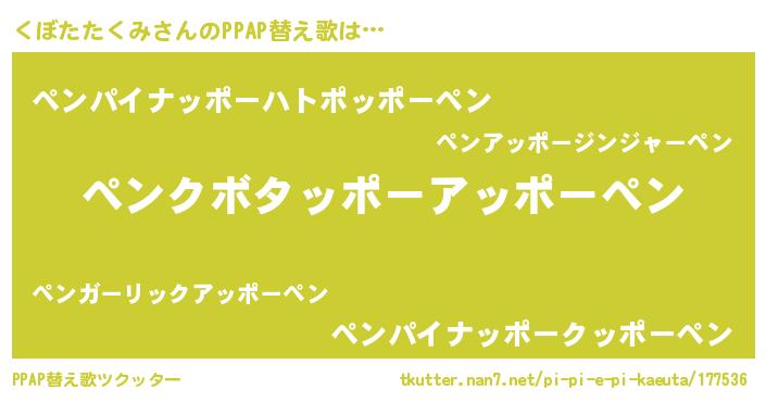 | 欧米人風あだ名 | 『ウサインくぼたたくみ』 |