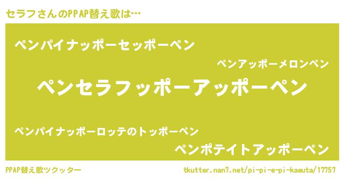 | ポケモン風あだ名 | 『セーライ』『ヒセラフ』『ゼニセラ』 |