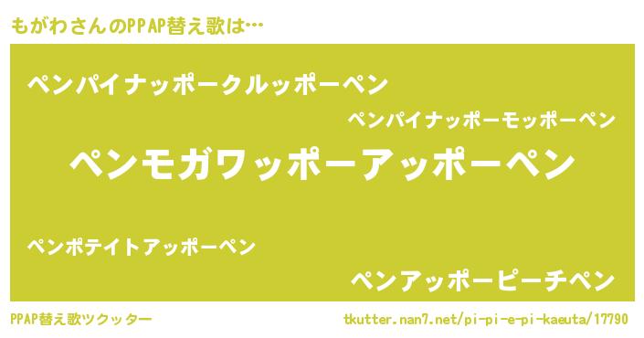 | 意味不明あだ名 | 『とにかく怪しいもがわ』『自称もがわ』 |