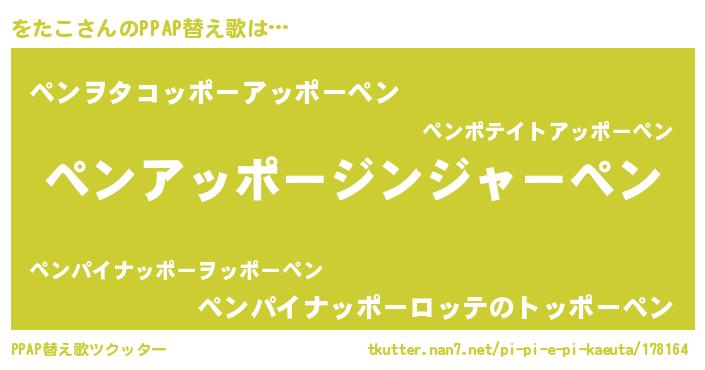 | ピコ太郎風あだ名 | 『ピヲ五郎』『ヲタ次郎』『ヲヲ太郎』 |