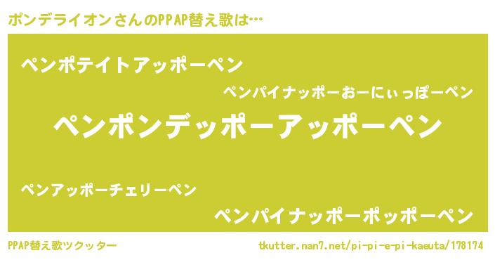 | 男性向けラノベタイトル風あだ名 | 『ポンデライオン~年齢イコール彼女いない歴の魔法使い~』 |