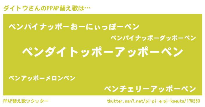 | ピコ太郎風あだ名 | 『ダイ一郎』『ダダ太郎』『ダコ六郎』 |