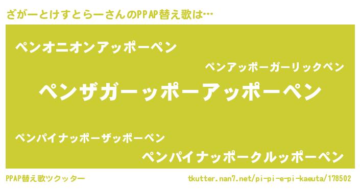 | ピコ太郎風あだ名 | 『ザガ一郎』『ザコ六郎』『ザザ太郎』 |