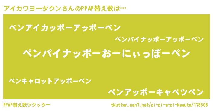 | ピコ太郎風あだ名 | 『アア太郎』『アイ史郎』『ピア二郎』 |