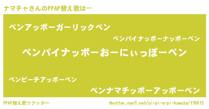 | ピコ太郎風あだ名 | 『ナナ太郎』『ピナ八郎』『ナマ一郎』 |