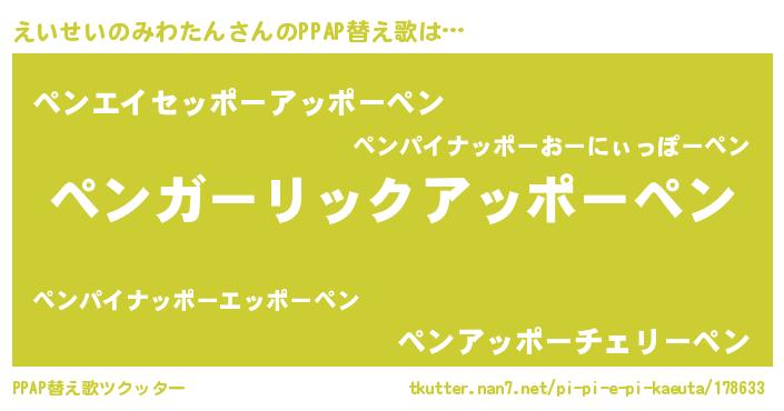 | 料理風あだ名 | 『えいせいのみわたんごはん』 |