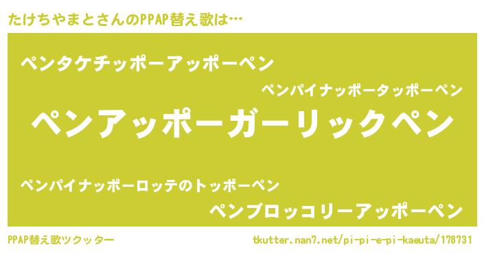 | ピコ太郎風あだ名 | 『ピタ十郎』『タケ史郎』『タコ十郎』 |