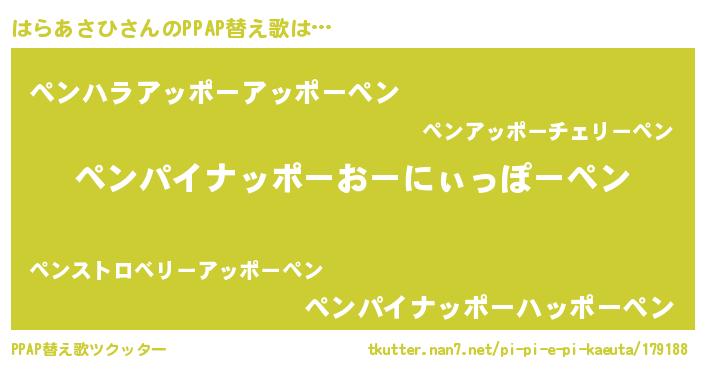 | 意味不明あだ名 | 『自称はらあさひ』『永久保存はらあさひ』 |