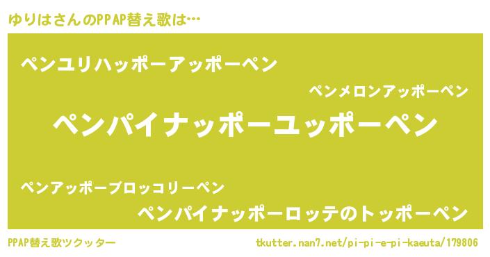 | 料理風あだ名 | 『ゆりはのカルパッチョ風』 |