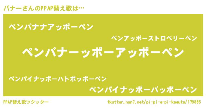 | 男性向けラノベタイトル風あだ名 | 『転生したらバナーだった件』 |
