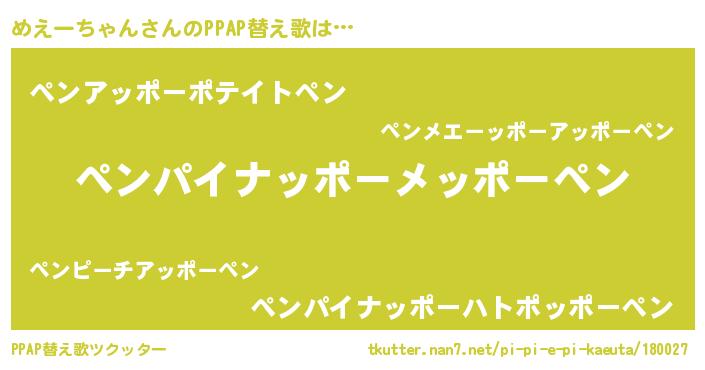 | ピコ太郎風あだ名 | 『ピコメ郎』『ピメ五郎』『メメ太郎』 |