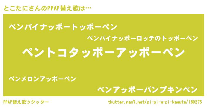 | ピコ太郎風あだ名 | 『トコ三郎』『ピコト郎』『ピト二郎』 |