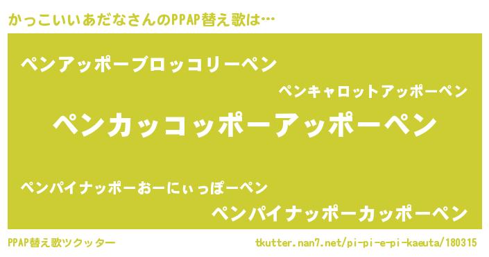 | 料理風あだ名 | 『かっこいいあだなのカルパッチョ風』 |