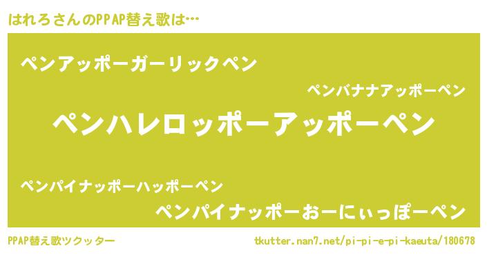 | ピコ太郎風あだ名 | 『ハレ次郎』『ピハ八郎』『ハハ太郎』 |