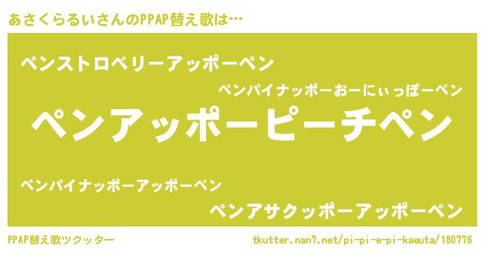 | ピコ太郎風あだ名 | 『ピア次郎』『アコ一郎』『アサ二郎』 |