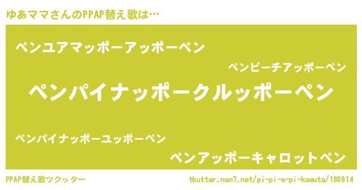 | 意味不明あだ名 | 『なめこ科ゆあママ属』『自称ゆあママ』 |