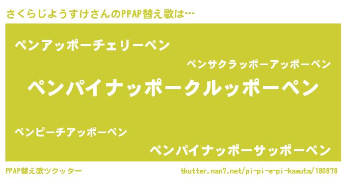 | 男性向けラノベタイトル風あだ名 | 『おまえをオタクにしてやるから、俺をさくらじようすけにしてくれ! 』 |