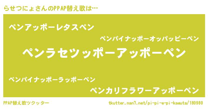 | ピコ太郎風あだ名 | 『ラセ十郎』『ピラ八郎』『ラコ六郎』 |