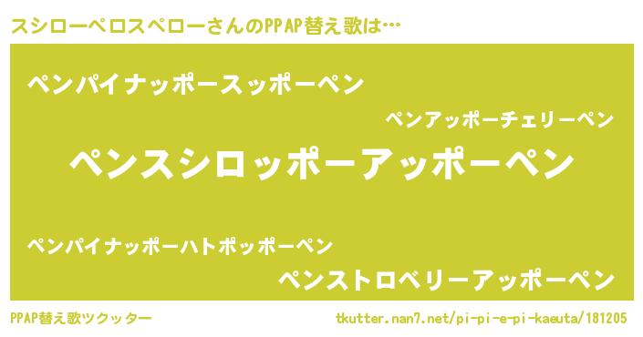| 男性向けラノベタイトル風あだ名 | 『スシローペロスペローの嫁は女の子じゃないと思った?』 |