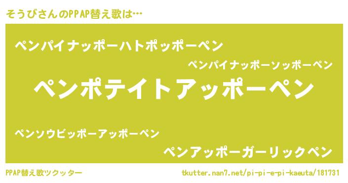 | ピコ太郎風あだ名 | 『ソコ五郎』『ソソ太郎』『ピソ十郎』 |