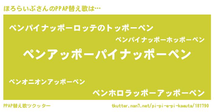 | 意味不明あだ名 | 『自称ほろらいぶ』『ニラ科ほろらいぶ属』 |