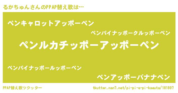 | ピコ太郎風あだ名 | 『ルカ史郎』『ルコ八郎』『ピル三郎』 |