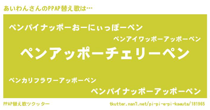 | 意味不明あだ名 | 『あいわんフォーエバー』『自称あいわん』 |