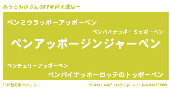 | ピコ太郎風あだ名 | 『ピミ五郎』『ミウ四郎』『ミミ太郎』 |