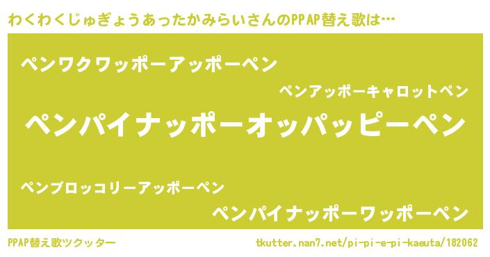 | ピコ太郎風あだ名 | 『ワワ太郎』『ワク六郎』『ピコワ郎』 |