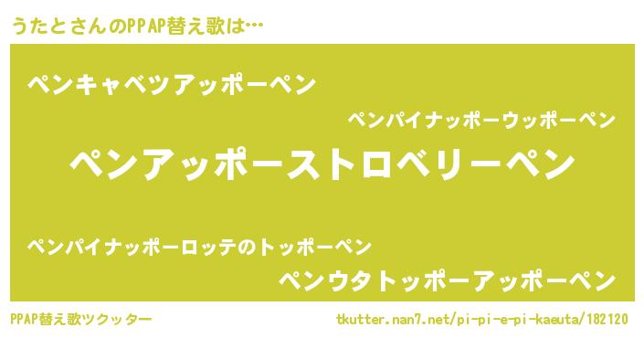 | ピコ太郎風あだ名 | 『ピウ一郎』『ウコ四郎』『ウタ十郎』 |