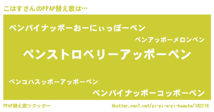| 2回繰り返すあだ名 | 『こはこは』『ぽよぽよ』『てくてく』 |