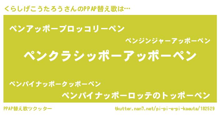 | 料理風あだ名 | 『くらしげこうたろうのカルパッチョ風』 |