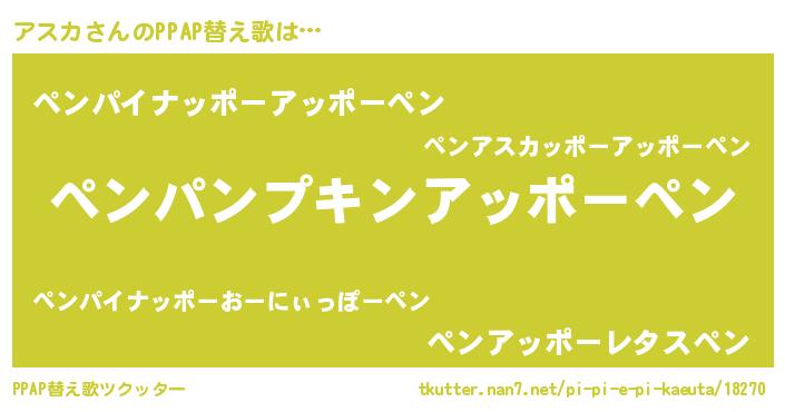 | 意味不明あだ名 | 『ペロリンアスカ』『永久保存アスカ』 |