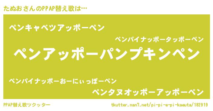 | ピコ太郎風あだ名 | 『ピタ二郎』『タコ次郎』『タヌ史郎』 |