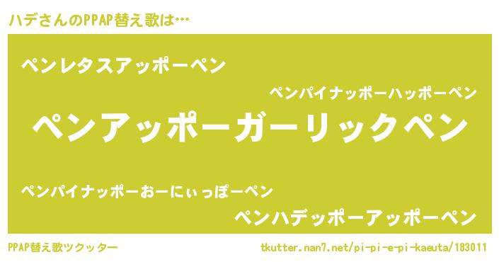 | ピコ太郎風あだ名 | 『ピハ八郎』『ハコ次郎』『ハデ太郎』 |