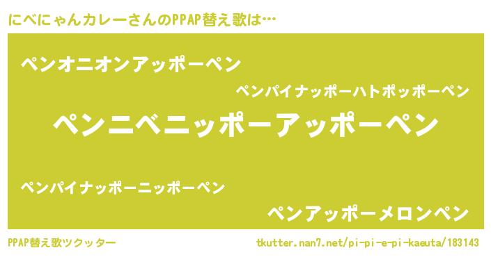 | 男性向けラノベタイトル風あだ名 | 『にべにゃんカレー~年齢イコール彼女いない歴の魔法使い~』 |