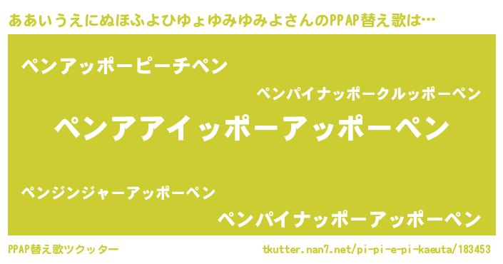 | 欧米人風あだ名 | 『ウサインああいうえにぬほふよひゆょゆみゆみよ』 |