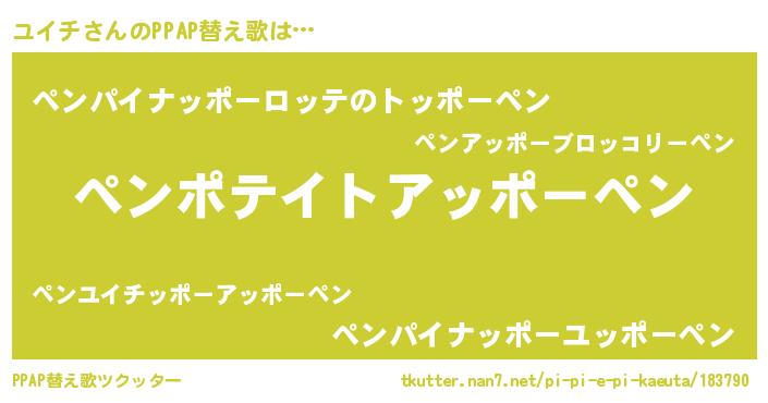 | 意味不明あだ名 | 『ペロリンユイチ』『永久保存ユイチ』 |