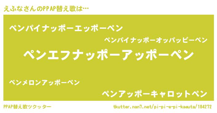| 意味不明あだ名 | 『めかぶ科えふな属』『自称えふな』 |