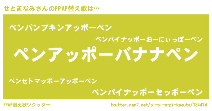 | 男性向けラノベタイトル風あだ名 | 『緋弾のセトマナミ』『せとまなみの憂鬱』 |