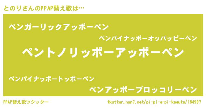 | ピコ太郎風あだ名 | 『トノ三郎』『トコ八郎』『ピト十郎』 |