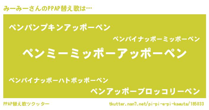 | ピコ太郎風あだ名 | 『ミー次郎』『ミコ五郎』『ピミ十郎』 |