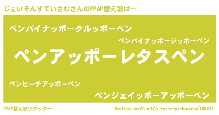 | 欧米人風あだ名 | 『トリンドルじぇいそんすていさむ』 |