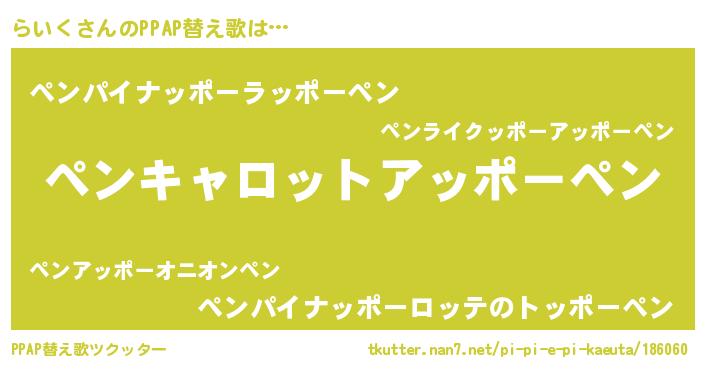 | ピコ太郎風あだ名 | 『ラコ八郎』『ピコラ郎』『ララ太郎』 |