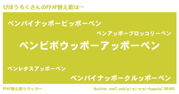 | ピコ太郎風あだ名 | 『ビボ太郎』『ピコビ郎』『ビビ太郎』 |