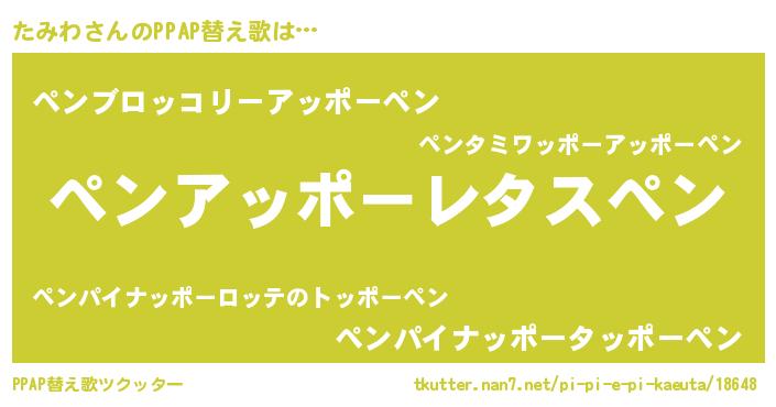 | 意味不明あだ名 | 『たみわフォーエバー』『ペロリンたみわ』 |