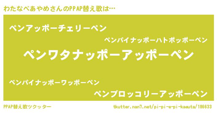 | ピコ太郎風あだ名 | 『ワタ太郎』『ピワ一郎』『ワコ十郎』 |
