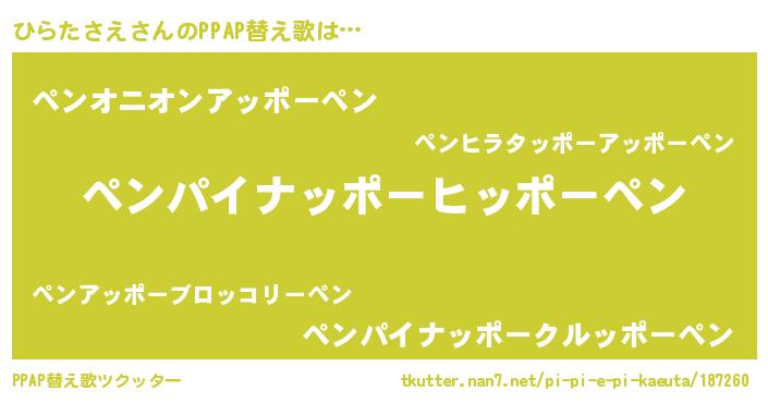 | 意味不明あだ名 | 『自称ひらたさえ』『永久保存ひらたさえ』 |